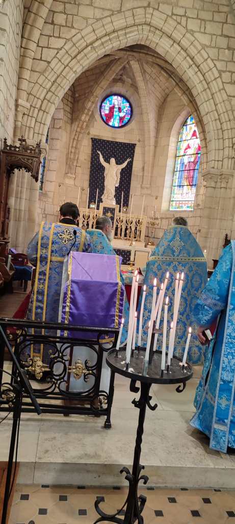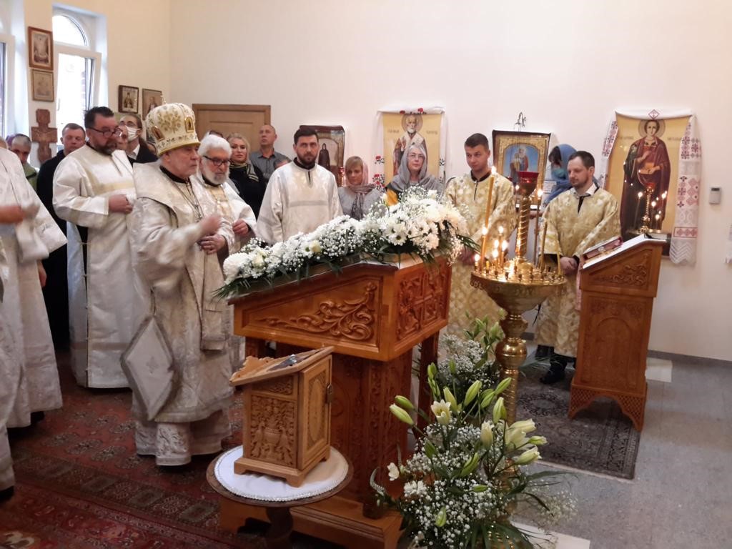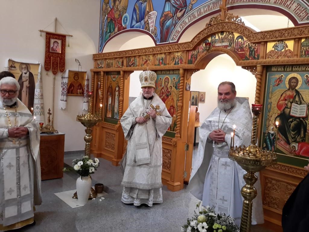 После Божественной литургии архиепископ Симон обратился ко многочисленным прихожанам, приехавшим на праздник со всей епархии, с архипастырским словом, а также поблагодарил настоятеля за вклад и помощь прихода в строительстве храма в честь иконы Пресвятой Богородицы «Живоносный Источник» в городе Льеж.